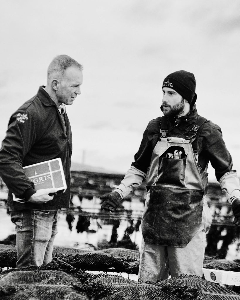 Adrien Legris, Christophe Trébaol et Arthur Legris perpétuent aujourd’hui le savoir-faire de la Maison, intimement lié à leur passion pour leur archipel du bout du monde. C’est aussi pour partager cet art de vivre au contact d’une nature sauvage et généreuse qu’ils œuvrent à s’adresser aux jeunes générations avec des produits toujours plus travaillé. La dégustation des huîtres Legris est indissociable d’une atmosphère rare, pétrie de paysages et de convivialité.